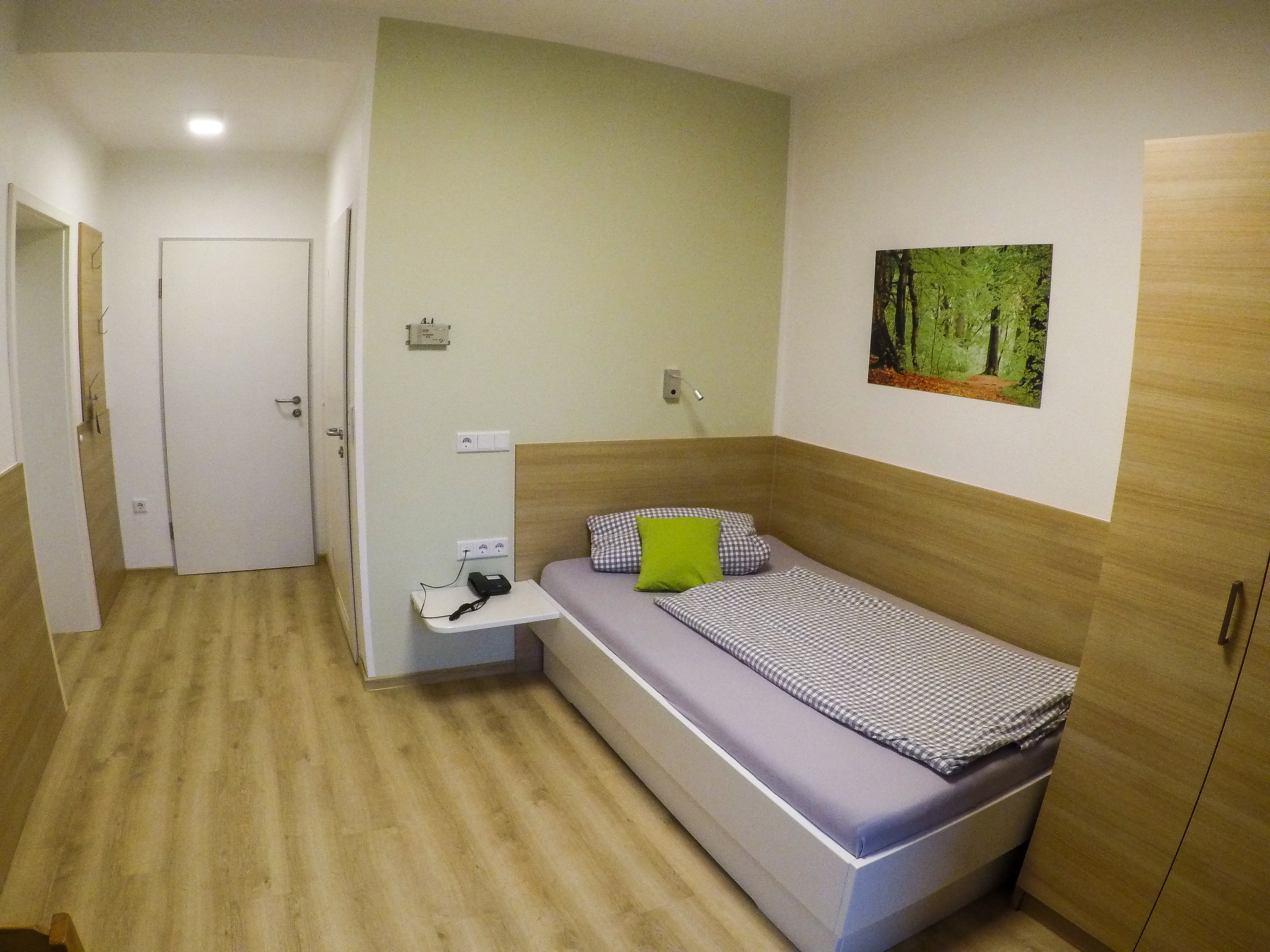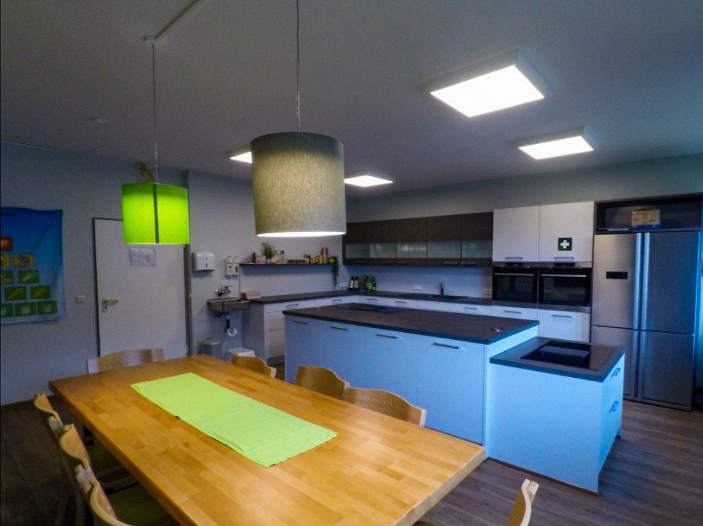 Auf jeder Etage befinden sich ein Gruppenraum und ein Wirtschaftsraum, der mit Waschmaschine und Trockner, Mikrowelle etc. ausgestattet ist. Auf Wunsch können wir gegen eine geringe Gebühr für die Dauer Ihres Aufenthaltes auch einen Flachbildfernseher in Ihrem Wohnraum bereitstellen.